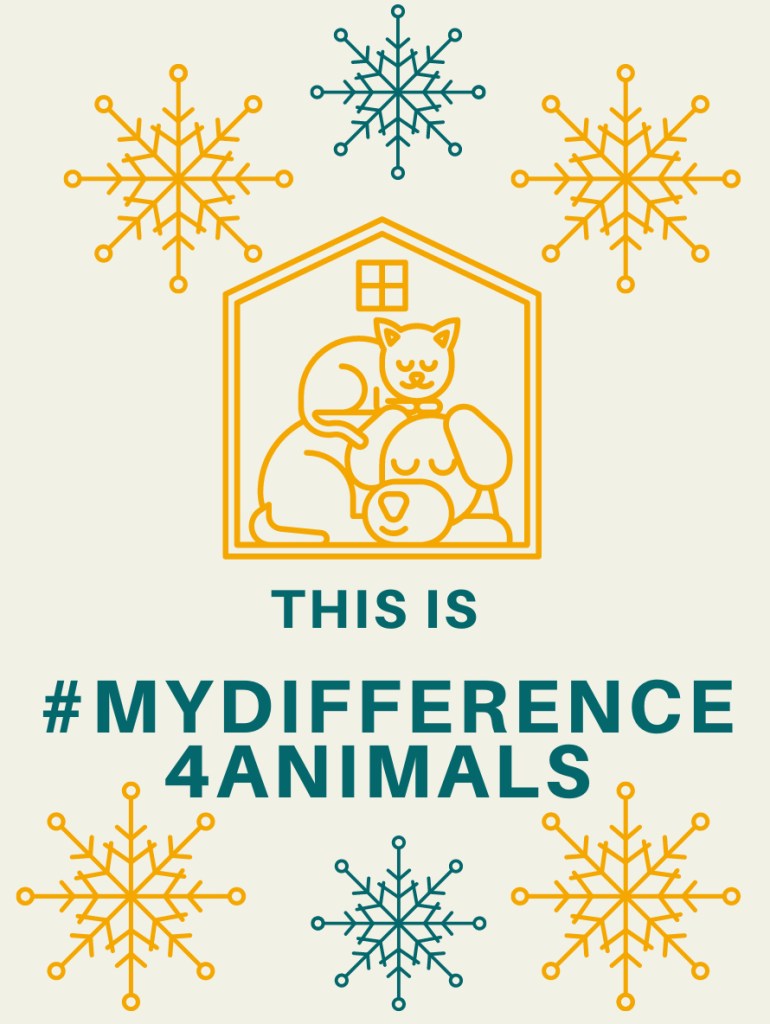 I also encourage you to share your donated gifts on your own social media, too! Follow my posts on Facebook and Instagram, and share, or post your own pics with the hashtag #mydifference4animals.